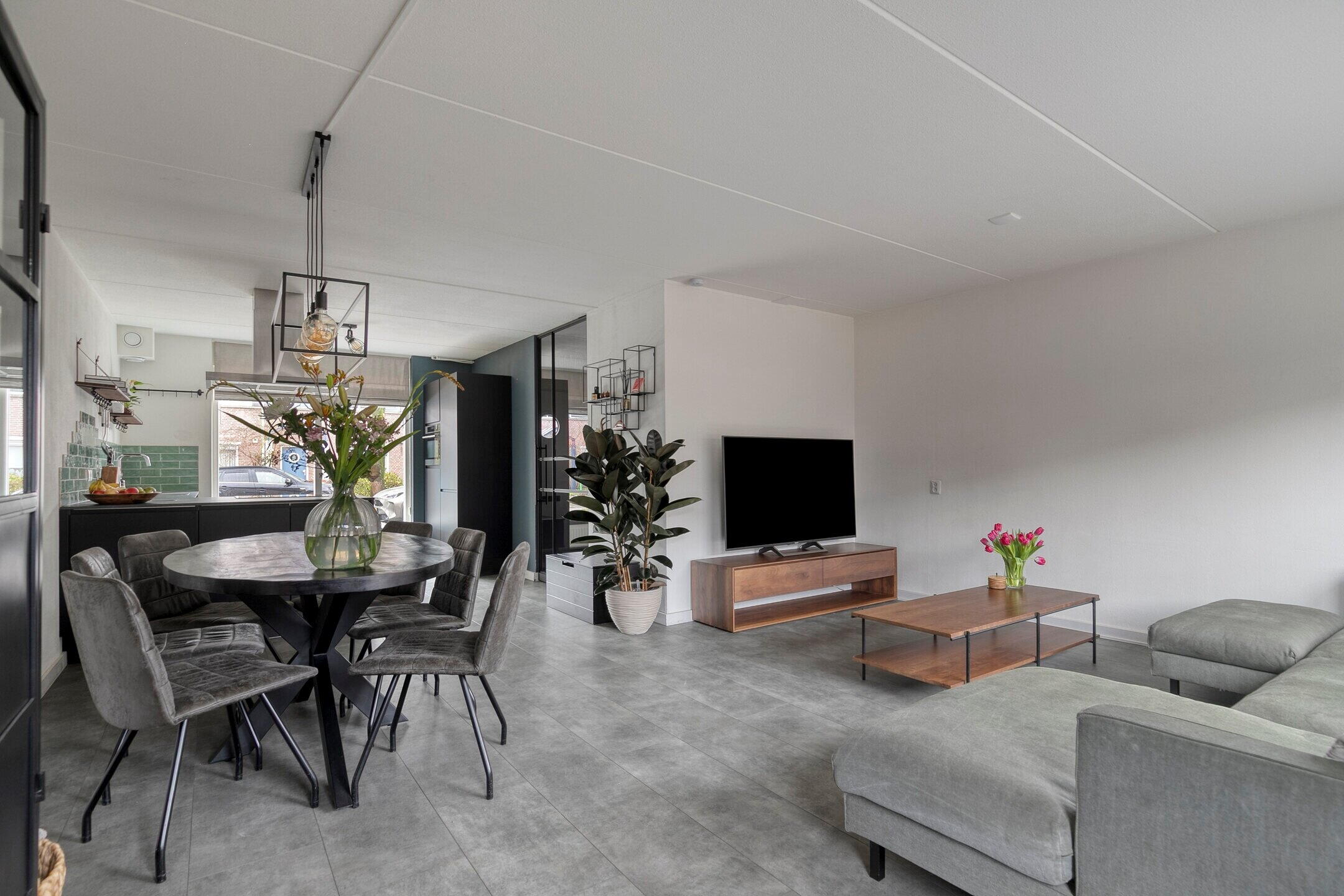 Wanneer u de woonkamer binnenstapt, valt meteen de prettige lichtinval op. Dankzij de grote raampartijen aan de voor- en achterzijde komt er overvloedig daglicht binnen. De ruimte is voorzien van vloerverwarming en biedt volop mogelijkheden voor zowel een royale zithoek als een gezellige eettafel.