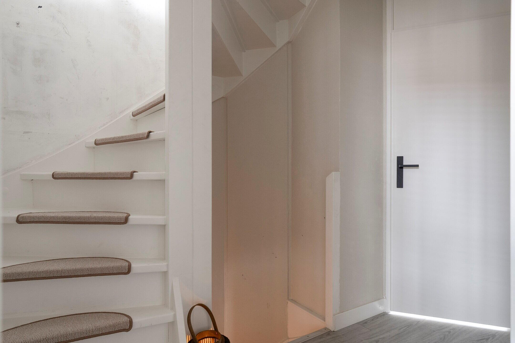 Bij binnenkomst valt direct op hoe keurig de woning is afgewerkt. De hal is ruim en licht opgezet en biedt toegang tot het toilet, de garderobe, de trapopgang met praktische bergruimte daaronder en de woonkamer en keuken, welke bereikbaar zijn middels een stalen deur.