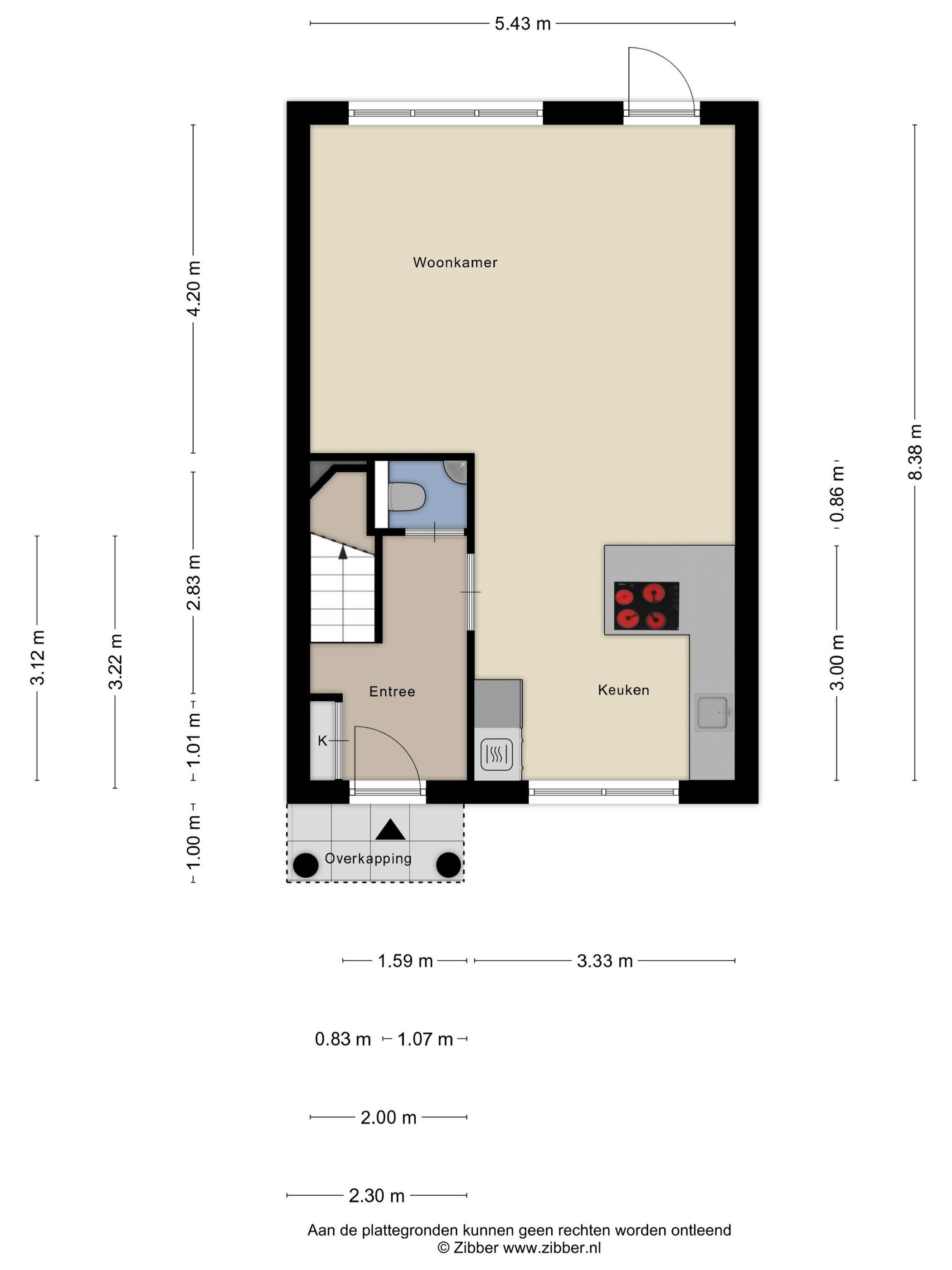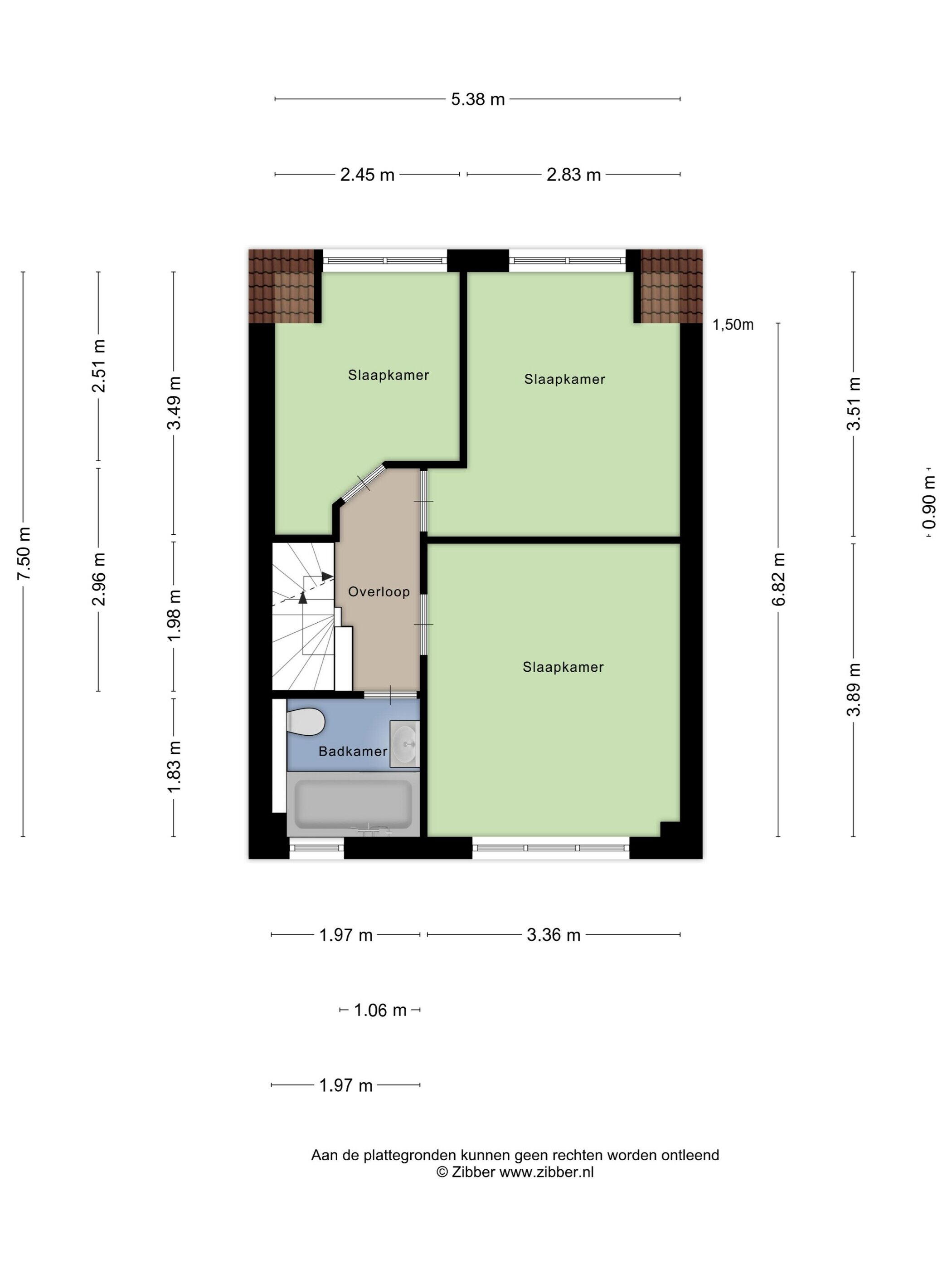 - 96 m² (16 meter diep en 6 meter breed)